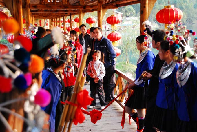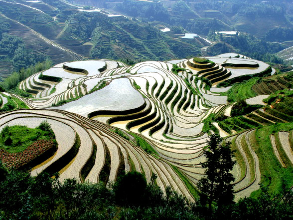 早餐后,驅(qū)車赴桂林龍勝縣,游覽世界一絕——【龍脊梯田】(約2小時(shí))。感受“青蛙一跳三塊田”“一田三株禾”的奇妙景象,品味“山是龍的脊,水是龍的魂,云是飛天翼,田是登天的梯”美妙意境;下午游覽【義江緣】(約90分鐘)——游客乘竹筏游覽風(fēng)景如畫的義江風(fēng)光,游客可以乘船領(lǐng)略壯族歌仙的曼妙歌聲、紅瑤傳奇的長發(fā)表演、激情四射的苗家花鼓,觀賞沿岸特色鮮明的桂西北少數(shù)民族風(fēng)情景觀。晚餐品嘗少數(shù)民族長街宴,游客們品嘗著滿桌的侗家美食外,感受盛情的東家妹子擰著你的耳朵,踩著你的腳,唱著山歌敬你的酒,酒興正酣的客人還可以和侗家男女一起跳竹竿舞、多耶舞,而侗鄉(xiāng)的“侗族大歌”“蘆笙踩堂”“蘆笙合奏”等精彩表演更加使游客流連忘返。   陽朔?? ???0???A?阿牛哥拋繡球定情處——【大榕樹月亮山】景區(qū);(約30分鐘)此景被譽(yù)為“浪漫主義的發(fā)源地,世界情侶的圓夢鄉(xiāng)”。前往位于桂林陽朔月亮山風(fēng)景區(qū)“十里畫廊”的精華旅游地段的【天籟蝴蝶泉】,蝴蝶泉是廣西民族風(fēng)情旅游示范點(diǎn),被譽(yù)為世界非物質(zhì)文化遺產(chǎn)。晚餐后,漫步陽朔【西街】—洋人街,她有古樸的桂北民居建筑和石板街道,有小鎮(zhèn)風(fēng)情和“背包老外”的浪漫情調(diào)。入晚之后,既有大理麗江的民族情調(diào),又有北京王府井的熱鬧,東西合壁,古今一體,堪稱中國西部第一街。