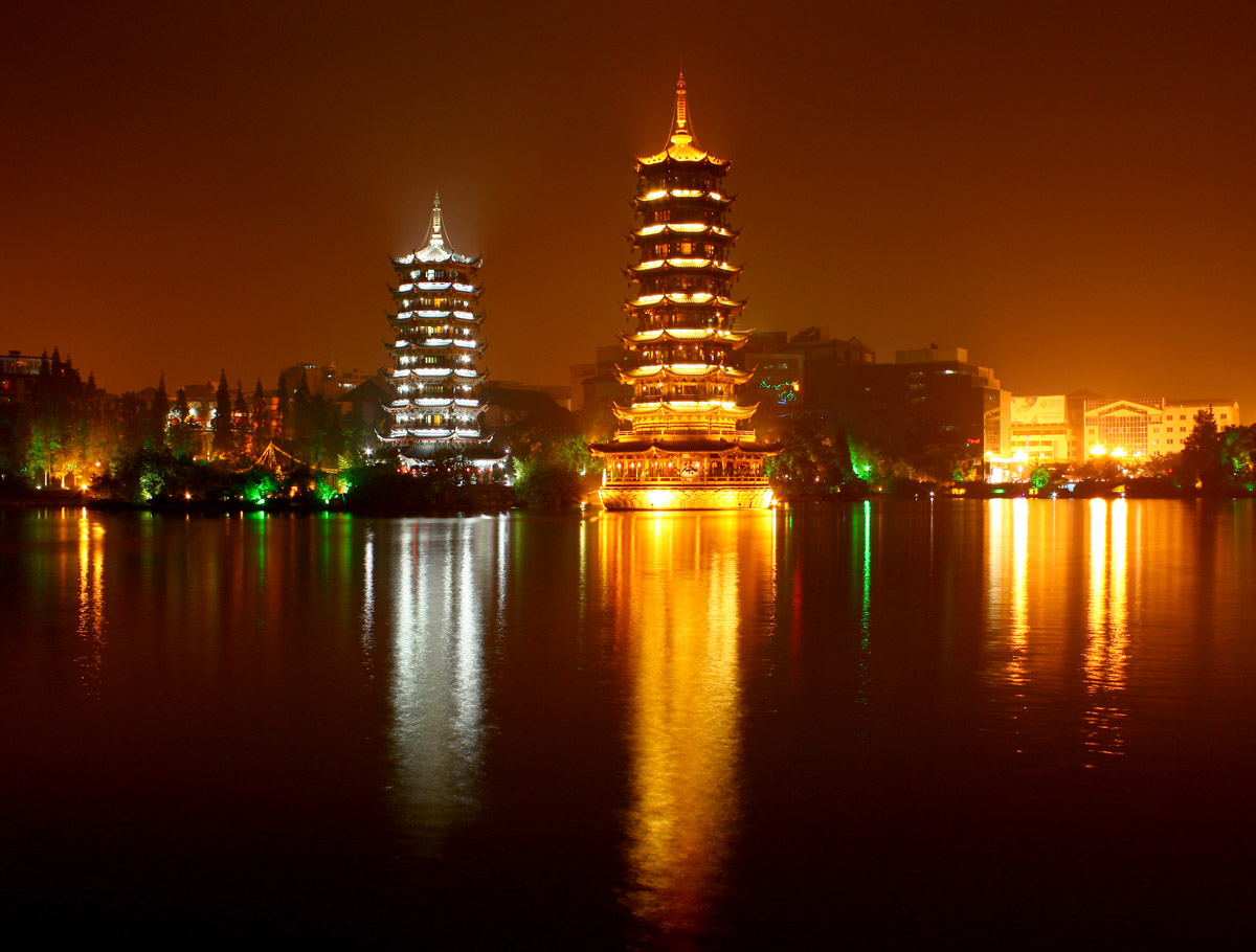 精華景點(diǎn):訾洲煙雨—訾洲島    標(biāo)志建筑—日月雙塔   桂林山水秀—山水間演出