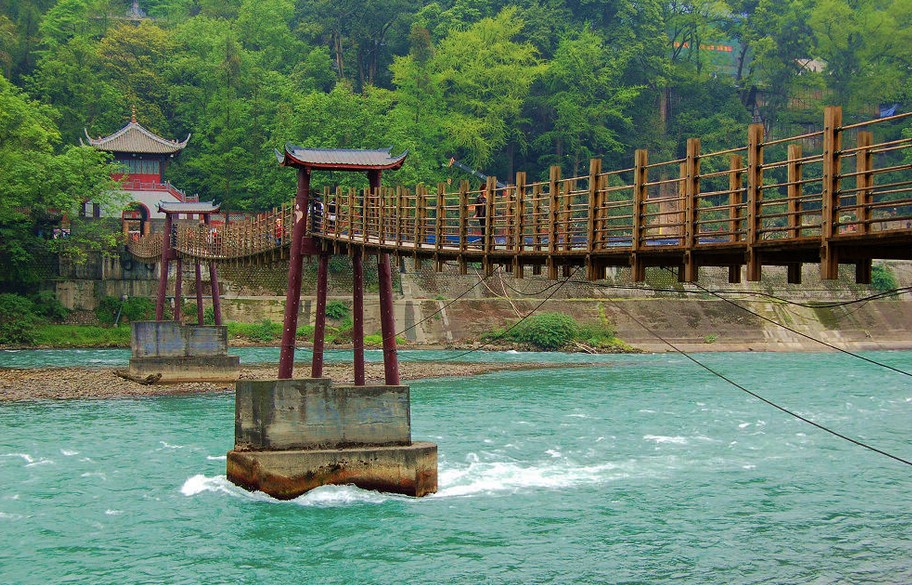 上午:約07:00成都市區(qū)二環(huán)路內(nèi),旅游大巴車到游客就近地點接團,出發(fā)經(jīng)川西平原54KM前往天府源頭—都江堰市,車覽上海援建的新城,經(jīng)過部分老城區(qū),到達都江堰景區(qū)。此時客人可前往景區(qū)右側(cè)的南橋參觀,待導(dǎo)游取網(wǎng)訂門票,隨后從【都江堰景區(qū)】南門進入離堆公園(自費乘觀光車15元/人)川西第一名園—清溪園、堰功道、臥鐵、張松銀杏(西游記里的人參果樹)、伏龍觀,之后來到戰(zhàn)國秦昭王時期(公元前227年)蜀郡守李冰在岷江上修建的中華第一古堰—被列為“世界文化遺產(chǎn)”的都江堰水利工程:寶瓶口引水口、飛沙堰泄洪壩、觀魚嘴分水堤。過安瀾索橋,隔著岷江內(nèi)江觀看在512地震中被損壞的秦堰樓、紀念李冰父子的二王廟,途經(jīng)茶馬古道可觀看都江堰與二王廟在歷史變遷中的照片。