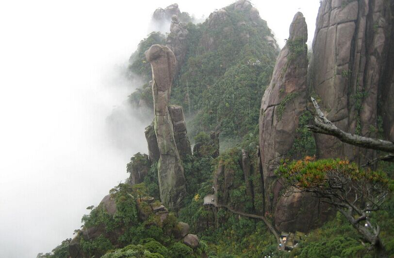 早換乘索道(報價已含)登上【三清山】(游覽300分鐘)西海岸:高空棧道、云海、山盟海誓、觀音送子等;陽光海岸:五老拜三清、渡仙橋、步云橋等;南清園:巨蟒出山、司春女神、生死相依、一線天等,游畢下山,乘車至婺源。