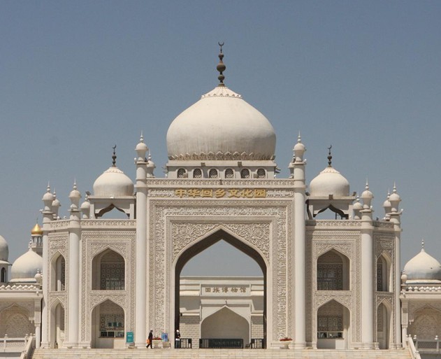 文化縮影之稱的--【中華回鄉(xiāng)文化園】(游覽1.5小時左右):潔白的拱門雄偉磅礴,金色的禮拜寺頂耀眼奪目,絢麗的浮雕彩繪,讓您回博館里讀歷史、禮拜殿中聽邦克、曼蘇爾宮賞歌舞、