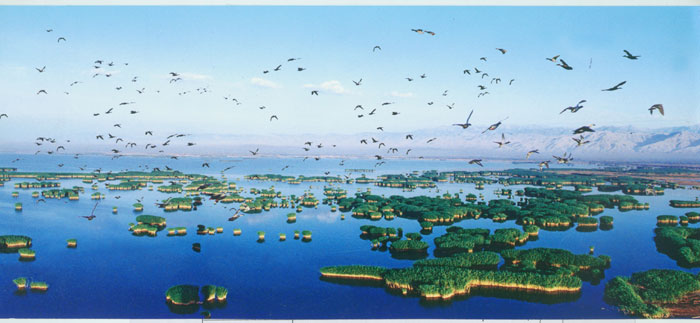 抵銀川,早餐后乘車赴中國三十五個王牌景點之一:【沙湖】(含大船、電瓶車,游覽2.5小時左右),沙湖美在沙水相融,秀在湖葦相映,奇在鳥飛魚躍。南沙北湖,葦叢若畫,融江