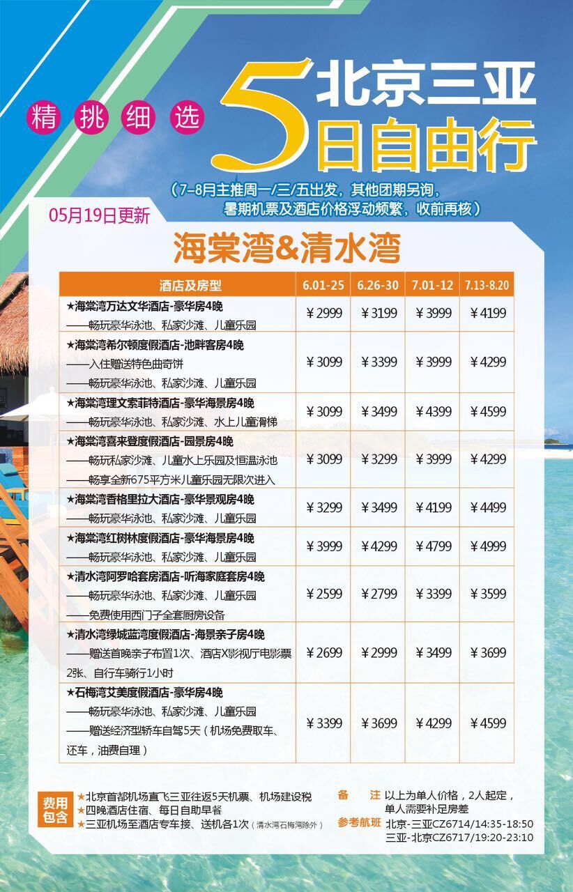 4、小孩只含機(jī)票及車位費(fèi),不含住宿及早餐,具體差額請(qǐng)電詢相關(guān)計(jì)調(diào)人員;