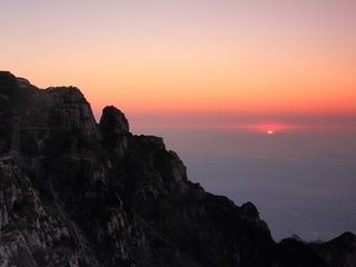 ?住泰山上欣賞泰山四大奇觀“日出東方、云海玉盤(pán)、晚霞夕照、黃河玉帶”。