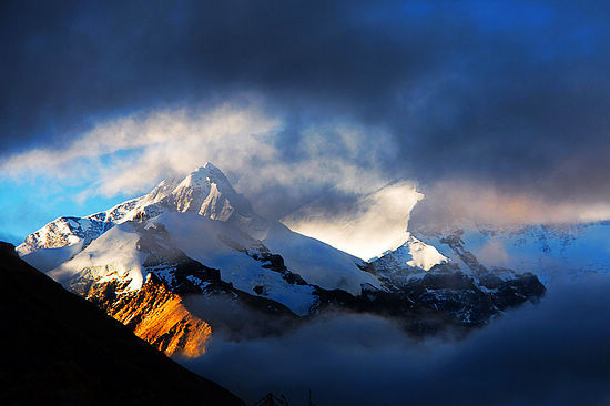 乘車385公里約10小時(shí)至珠峰大本營,經(jīng)拉孜至定日。拉孜,藏語為“光明*先照耀的金色峰頂”,是藏刀的原產(chǎn)地,可以買到*好的藏刀。稍做停留后趕往定日,中午在定日用餐,出發(fā)5公里處到達(dá)魯魯邊檢站,檢查邊防證和身份證,然后翻越達(dá)遮古拉山口,從這里可以看到4座8000米以上的雪山,依次為:珠穆朗瑪峰(海拔8844.43米),馬卡魯峰(8463米),洛子峰(8516米),藏語為“青色美貌的仙女”,卓奧友峰(8201米),藏語為“首席尊師”。從這里出發(fā)經(jīng)過峽谷、懸崖與怪石到珠穆朗瑪峰大本營,步行需2小時(shí),坐車只要15分鐘??粗槟吕尸敺?好是一大清早或傍晚時(shí)分,此時(shí)景色*是宜人