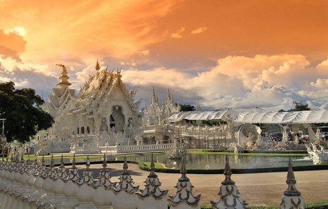 早餐后,我們將乘車前往清萊前往〖清萊白廟〗(游覽時間約45分鐘):又名靈光寺白廟龍昆藝術(shù)廟,由泰國名藝術(shù)家-查仁猜師父,花五年多時間所建,在泰國的廟宇中是個另類,它精湛的藝術(shù)性令人嘆為觀止。除此之外,也混合很多現(xiàn)代元素,比如蝙蝠俠等超級英雄的頭顱懸掛在旁邊的樹上等等,也象征佛法的包容博大。進(jìn)入白廟先過奈何橋,有千百只手掙扎象征地獄,通過地獄才能進(jìn)入天堂。即一念天堂,一念地獄。而后游覽〖清萊黑廟博物館〗(游覽時間約45分鐘):位于泰緬老交界地帶,是泰國藝術(shù)家Thawan Duchanee設(shè)計(jì)建造的黑屋博物館,博物館主題是地獄及死亡。他窮畢生精力搜集了大量難以想象的關(guān)于死亡、地獄的展品,包括數(shù)千年前的獸骨,原始民族的獵殺工具,各式各樣的古代工具、古董和標(biāo)本等,用現(xiàn)代裝置藝術(shù)的手法,把展品融合成一件一件的藝術(shù)品。游覽結(jié)束后返回清邁,路過〖天然溫泉〗停下車歇歇腳稍作休息,贈送每位客人來自〖天然溫泉〗的〖溫泉蛋〗。