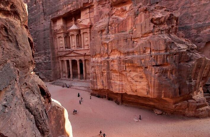前往游覽佩特拉古城。佩特拉古城又稱玫瑰古城,特殊的地貌使這里呈現(xiàn)出絕美的顏色,是約旦**負盛名的古跡區(qū)。2007年7月8日被評選為世界新七大奇跡,也是世界文化遺產(chǎn)之一。入口是一條長約1.5公里的狹窄峽谷通道。建筑物雕鑿在懸崖峭壁面內(nèi),其房間也隱沒在巖石之中。峽谷盡頭豁然開朗,聳立著一座高約40米、寬約30米的依山雕鑿的哈茲納赫殿堂(意為金庫)造型雄偉。穿過哈茲納赫殿堂前面的小谷,有古羅馬劇場遺跡。劇場后面有一片開闊地,城市依四周山坡建筑而成,有寺院、宮殿、浴室和住宅等。還有從巖石中開鑿出來的水渠。在東北部的山巖上開鑿有石窟,其中有一座氣勢雄偉的三層巨窟,正面為羅馬宮殿建筑風格,是歷代國王的陵墓(游覽約2.5小時),返回酒店休息,享用晚餐