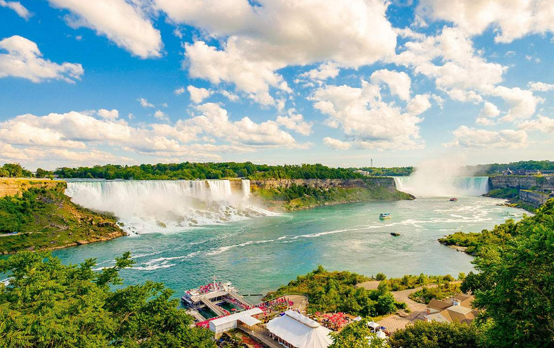 乘車前往多倫多,抵達后市區(qū)游覽【多倫多市區(qū)游覽】(約1.5小時),參觀加拿大著名的【多倫多大學(xué)】(車上看)、【省議會】(外觀)、【市政廳】(外觀)和世界最高建筑物553米的【多倫多CN塔】(不上塔)多倫多CN塔為全世界最高的通訊塔,是加拿大的著名象征,也是多倫多城市風(fēng)景線的重要標志。塔頂觀景臺為世界上最高的觀景平臺從塔頂可遠眺整個多倫多市、安大略湖及多倫多各島嶼的美麗景色。之后前往游覽【尼亞加拉大瀑布】(約30分鐘)在加拿大那邊正面觀賞留影。瀑布位于加拿大和美國交界的尼亞加拉河中段地區(qū),有著世界七大奇景之一的美譽, 同時也是世界三大瀑布之一。它以宏偉的氣勢,豐沛而浩瀚的水汽,震撼了所有的游人。從伊利湖滾滾而來的尼亞加拉河水流經(jīng)此地,突然垂直跌落51米,巨大的水流以銀河傾倒之勢沖下斷崖,聲及數(shù)里之外,場面震人心魄,形成了氣勢磅礴的大瀑布。晚上入住康寧小鎮(zhèn)。