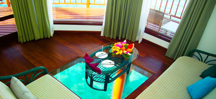每個(gè)平房都配備了所有現(xiàn)代化的設(shè)施,這樣的設(shè)計(jì)也適應(yīng)現(xiàn)代旅客的需求。所有的平房都裝有空調(diào)和吊扇。他們也有國(guó)際直撥電話連接和衛(wèi)星電視。客房都有一個(gè)迷你酒吧??头恳灿杏謱捰写笫孢m的雙人床鋪,有四個(gè)擁有私人按摩浴缸的水上別墅。也是附有淋浴的浴室,并且提供熱水和冷水。人們還可以找到吹風(fēng)機(jī)和很多的洗浴設(shè)施。