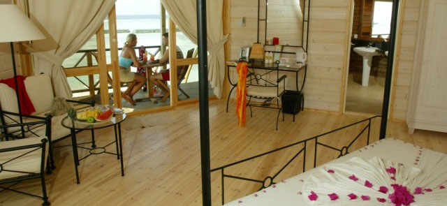 礁湖的西北部。在陽臺的甲板上可欣賞到美麗的日落,浪漫的美景別致的木柱猶如童話般的別墅。別墅有寬敞的臥室和精致客廳還有可以一覽印度洋全景的淋浴室。但出于安全考慮,我們不允許12歲以下兒童預(yù)定。