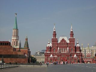 紅場(chǎng):位于莫斯科市中心,西南與克里姆林宮相毗連。原是前蘇聯(lián)重要節(jié)日舉行群眾集會(huì)和閱兵的地方。西側(cè)是克里姆林宮,北面為國(guó)立歷史博物館,東側(cè)為百貨大樓,南部為瓦西里布拉仁教堂。臨莫斯科河。列寧陵墓位于靠宮墻一面的中部。墓上為檢閱臺(tái),兩旁為觀禮臺(tái)。