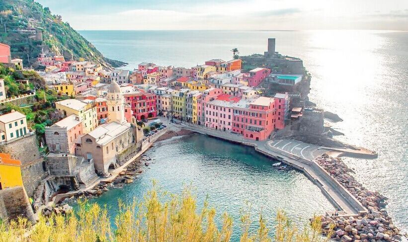 乘車前往拉斯佩齊亞游覽意大利五漁村,依山傍海的“五漁村”平凡而獨特。碧澈的海水和奇巧的險峰讓這五個靜靜躺在利古里亞海邊山坳中的小漁村有了如詩如畫的醉人之美。五漁村是五個依山傍海的小村莊,俯瞰著地中海的北岸。意大利語中“terra”是土地的意思,而這片土地,恍若隔世小島,依著山勢而開墾出的房舍與田園,保留原始的自然美,與世隔絕彷彿世外桃源,而被聯(lián)合國教科文組織列為世界遺產(chǎn),更有人形容是北意的阿瑪菲。盤據(jù)在懸崖上一棟棟色彩繽紛的房舍,及岸邊??可世_紛的船只,每到夏天海面上點點白帆,與許多游泳的人影,村落上餐廳、咖啡廳、商店林立是這些小漁村的典型風(fēng)光,欣賞懸崖峭壁的綿延海岸線及山谷有許多色彩繽紛的房舍,斜坡上綠意盎然的葡萄園,景色宜人,令人心曠神怡!